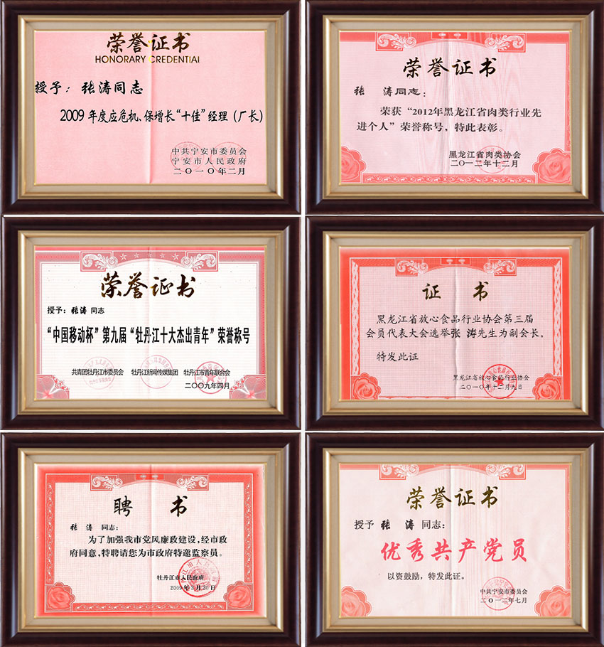 張濤,男,1973年出生,中共黨員,大學(xué)文化,食品加工高級(jí)工程師,系牡丹江市鑫鵬肉業(yè)有限責(zé)任公司董事長(zhǎng)及總經(jīng)理。 張濤董事長(zhǎng)自2006年11月任牡丹江市鑫鵬肉業(yè)有限責(zé)任公司董事長(zhǎng)及總經(jīng)理以來(lái),無(wú)論從事邊貿(mào)業(yè)務(wù),還是擔(dān)任企業(yè)領(lǐng)導(dǎo),都能把扎實(shí)的工作作風(fēng)放在首位,工作以身作則,勤奮敬業(yè),食品加工的理念知識(shí)和技術(shù)精湛,具有較豐富的實(shí)踐經(jīng)驗(yàn)和解決復(fù)雜技術(shù)問(wèn)題的能力,經(jīng)常幫助兄弟單位解決食品生產(chǎn)與銷(xiāo)售中存在的技術(shù)難題,為本地區(qū)食品工業(yè)的生產(chǎn)與對(duì)俄貿(mào)易做出了突出貢獻(xiàn),得到各級(jí)黨委、政府及社會(huì)組 織授予的各種榮譽(yù): 曾榮獲共青團(tuán)牡丹江市第七屆“十大杰出青年”;共青團(tuán)寧安市第七屆“十佳杰出青年”,榮獲牡丹江市委組織部、市人力資源和社會(huì)保障局、共青團(tuán)牡丹江市委員會(huì)授予張濤同志首屆“牡丹江市青年拔尖人才稱(chēng)號(hào)”;榮獲黑龍江陸軍預(yù)備役步兵師授予“******預(yù)備役軍官”;榮獲中共牡丹江市委員會(huì)、牡丹江人民政府授予“農(nóng)業(yè)******影響十大人物”;榮獲共青團(tuán)牡丹江市委員會(huì)、牡市工商局、牡市工業(yè)和信息委員會(huì)、牡市地稅局、牡市人力資源和社會(huì)保障局、牡丹江新聞傳媒集團(tuán)授予張濤同志第二屆牡丹江市青年創(chuàng)業(yè)獎(jiǎng)稱(chēng)號(hào);榮獲牡丹江市***************員稱(chēng)號(hào)。
